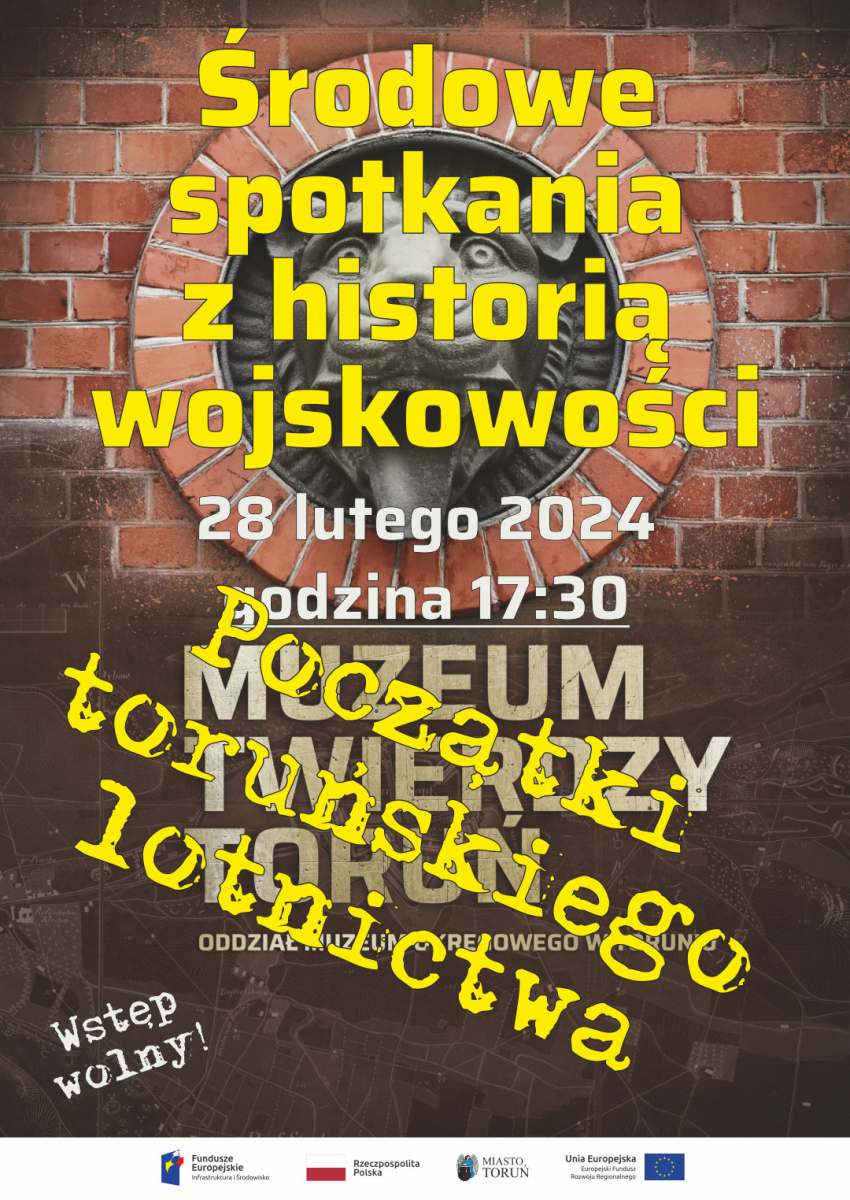 Muzeum Twierdzy Toruń, oddział Muzeum Okręgowego w Toruniu, zaprasza na kolejną odsłonę cyklu „Środowe spotkania z historią wojskowości”, tym razem, naszym gościem będzie pan Miłosz Rusiecki – pasjonat lotnictwa i autor książki „Lotnicze obiekty Torunia 1908–1955. Obiekty aeronautyczne”.