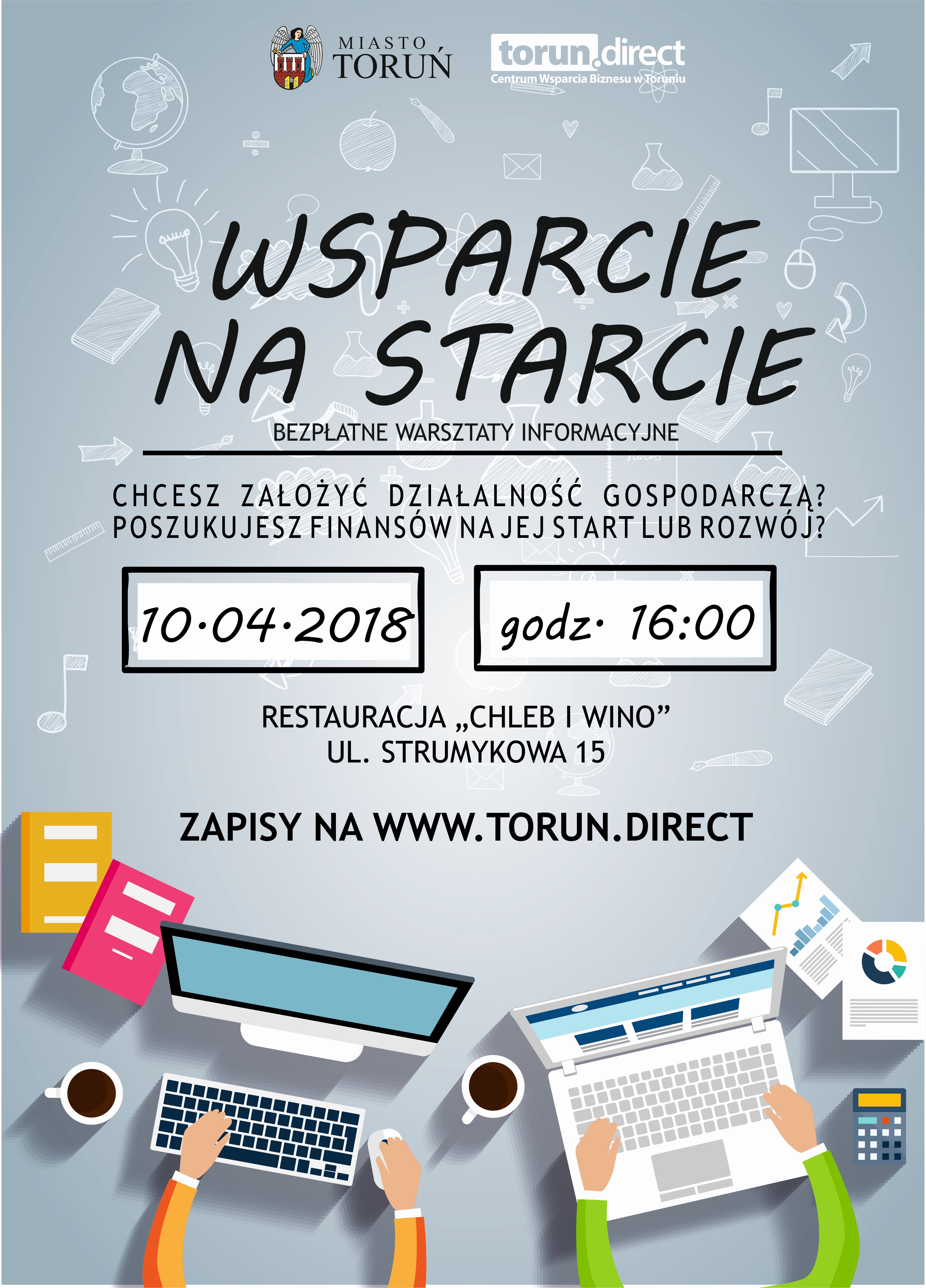 Są jeszcze wolne miejsca! Centrum Wsparcia Biznesu w Toruniu zaprasza na bezpłatne warsztaty „Wsparcie na starcie”.