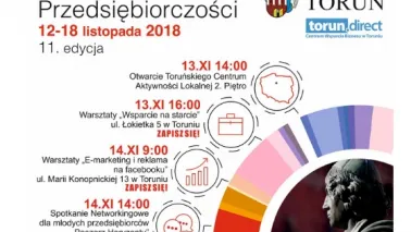Centrum Wsparcia Biznesu w Toruniu jako koordynator regionalny Światowego Tygodnia Przedsiębiorczości zaprasza na warsztaty i spotkania związane z prowadzeniem biznesu.