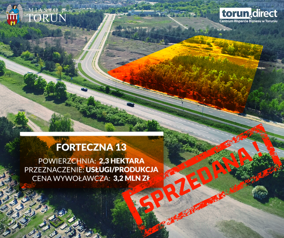Działka przy ul. Fortecznej 13 została sprzedana za 3 232 000 zł, a jej właścicielem została toruńska firma Baza Sp. z o.o.
