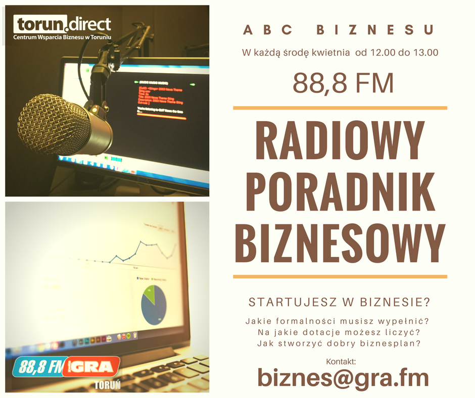Startuje nowy projekt informacyjny Centrum Wsparcia Biznesu w Toruniu dotyczący zakładania działalności gospodarczej. W kwietniu na antenie Radia GRA zaplanowano cykl audycji pod nazwą „ABC Biznesu - Radiowy Poradnik Biznesowy”.
