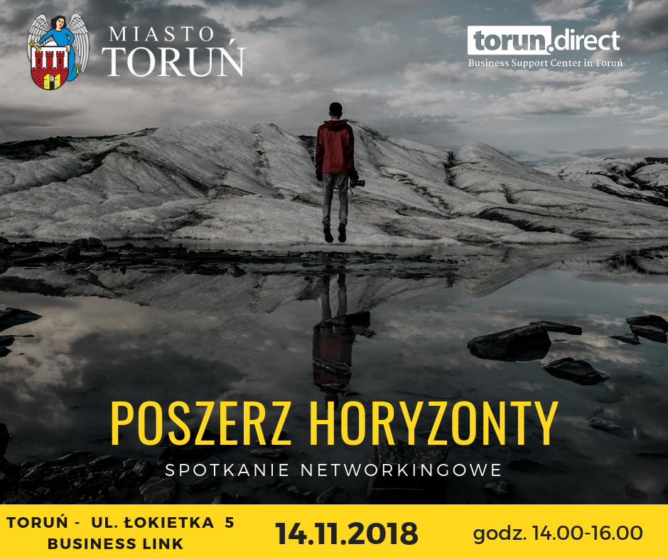 Ruszyły zapisy na spotkanie networkingowe dla młodych przedsiębiorców „Poszerz Horyzonty”, które odbędzie się 14 listopada 2018 roku o godz. 14:00 w Business Link Toruń, ul. Łokietka 5.
