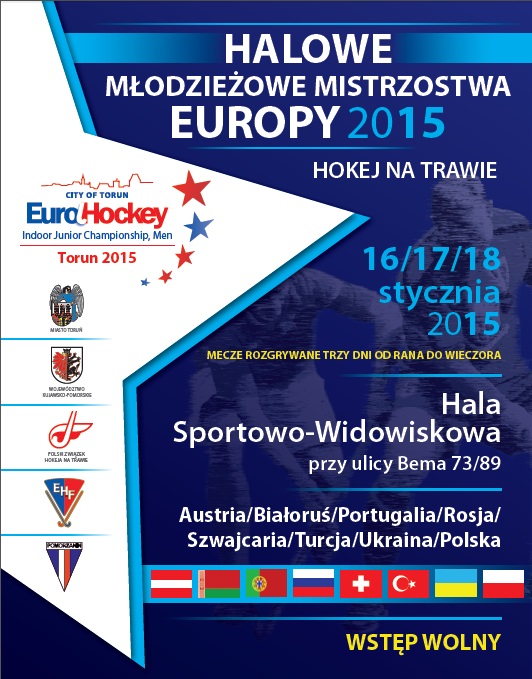 16-18 stycznia 2015 roku w hali sportowo-widowiskowej w Toruniu odbędą się Halowe Młodzieżowe Mistrzostwa Europy mężczyzn w hokeju na trawie. Wstęp na zawody jest bezpłatny.
