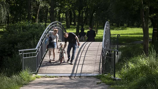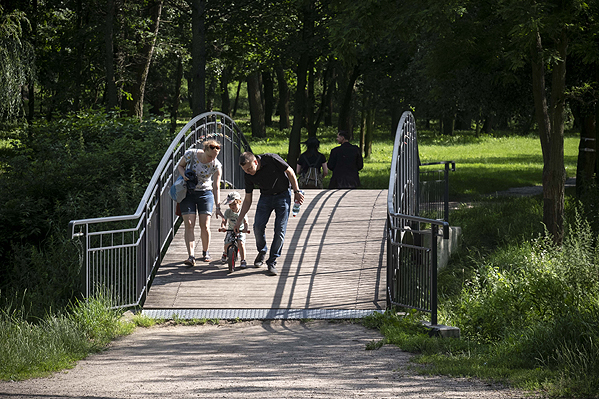 Rodzice i ich dzieci najchętniej korzystają z dwóch kolorowych i bogato wyposażonych placów zabaw, które powstały na wysokości ul. Konopnickiej. Są tam zjeżdżalnie, karuzele, piaskownice oraz różnego typu huśtawki i urządzenia do wspinania. Co ważne, oba place mają bezpieczne nawierzchnie. W sąsiedztwie fontanny znajduje się wielofunkcyjne boisko sportowe. Miłośnicy sportów zimowych mogą skorzystać z toru saneczkowego.