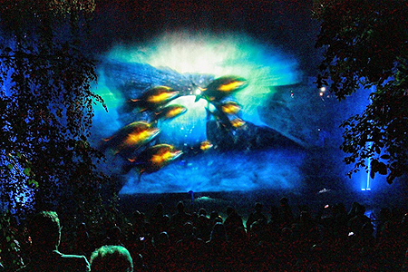 Tilen Sepic oraz Katja Paternoster z Lighting Guerrilla Laboratory przygotowali dla nas wyjątkową instalację złożoną z dwóch projektów - „Chmury” oraz „Nocni obserwatorzy”, które umiejscowione będą w ogrodzie „Baja Pomorskiego”. Pierwsza z nich jest pewnego rodzaju zabawą światłem, magiczną interwencją, która przekształca konteksty przestrzenne. Sztuczne chmury przypominają nam o tym, jak wiele możemy zaobserwować na niebie, a zaskakujące źródła dźwiękowe odzwierciedlają otaczającą przestrzeń miasta. Instalacja „Nocni obserwatorzy” przybliża zjawisko życia dzikich zwierząt w mieście. Artystka przedstawia je jako serię świetlnych obiektów, którymi stara się zwrócić uwagę na ich tajemniczą obecność. Zwierzęta, które za dnia ukrywają się w tajemniczych zakamarkach, nocą niepostrzeżenie wkradają się w pobliże siedlisk ludzkich.