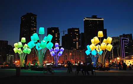 Na ulicy Szerokiej można będzie zobaczyć „Bukiet abażurów” - intrygujące dzieło francuskich artystów światła Tilt. Bukiety kilkunastu gigantycznych lamp, niczym bukiety kwiatów w przestrzeni miejskiej to konfrontacja feerii wolno zmieniających się, gorących barw z przestrzenią toruńskiej starówki, nadająca jej nowy, poetycki wymiar.