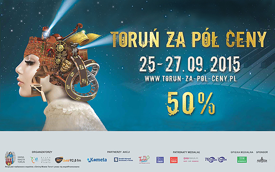 50-procentowe rabaty w toruńskich kawiarniach i restauracjach, hotelach, obiektach sportowych, sklepach i placówkach kultury oraz sklepach internetowych – w weekend 25-27 września 2015 r. rusza kolejna, już dziewiąta edycja akcji „Toruń za pół ceny”, organizowanej przez Miasto Toruń i Radio ZET Gold. Edycja wiosenna odbyła się w kwietniu.