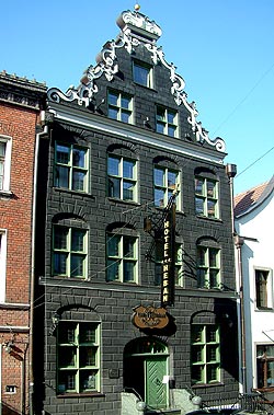 Bardzo ciekawa, czteroosiowa kamienica późnorenesansowa z XVII w. z rodowodem średniowiecznym. Po generalnej odnowie i konserwacji okazało się, że fasada kamienicy posiadała czarny kolor, który został jej przywrócony. Do rzadkości należy, że również fasada od parteru do szczytu jest boniowana. Na tle czarnego koloru zielone ramy okienne oraz jasne ozdoby opaskowe szczytu podkreślają wspaniałość całej kamienicy. Obecnie po przeprowadzonych we wnętrzu pracach konserwatorskich oraz budowlanych znajduje się tu stylowy hotel "Heban", restauracja i kawiarnia.