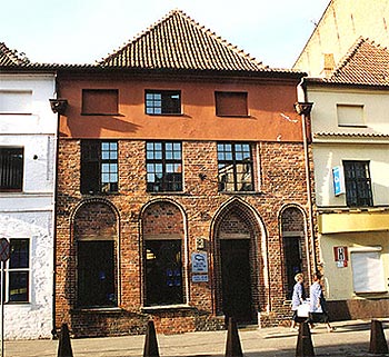 Jest to zespół trzech kamienic z gotyckim rodowodem, zwłaszcza środkowa. Kamienice przeszły w ciągu wieków różne przebudowy, przystosowujące je w XVII w. do celów szpitalnych. Mieścił się tu Szpital Mieszczański, zwany również szpitalem świętych Piotra i Pawła. Obecnie mieści się tu bank.